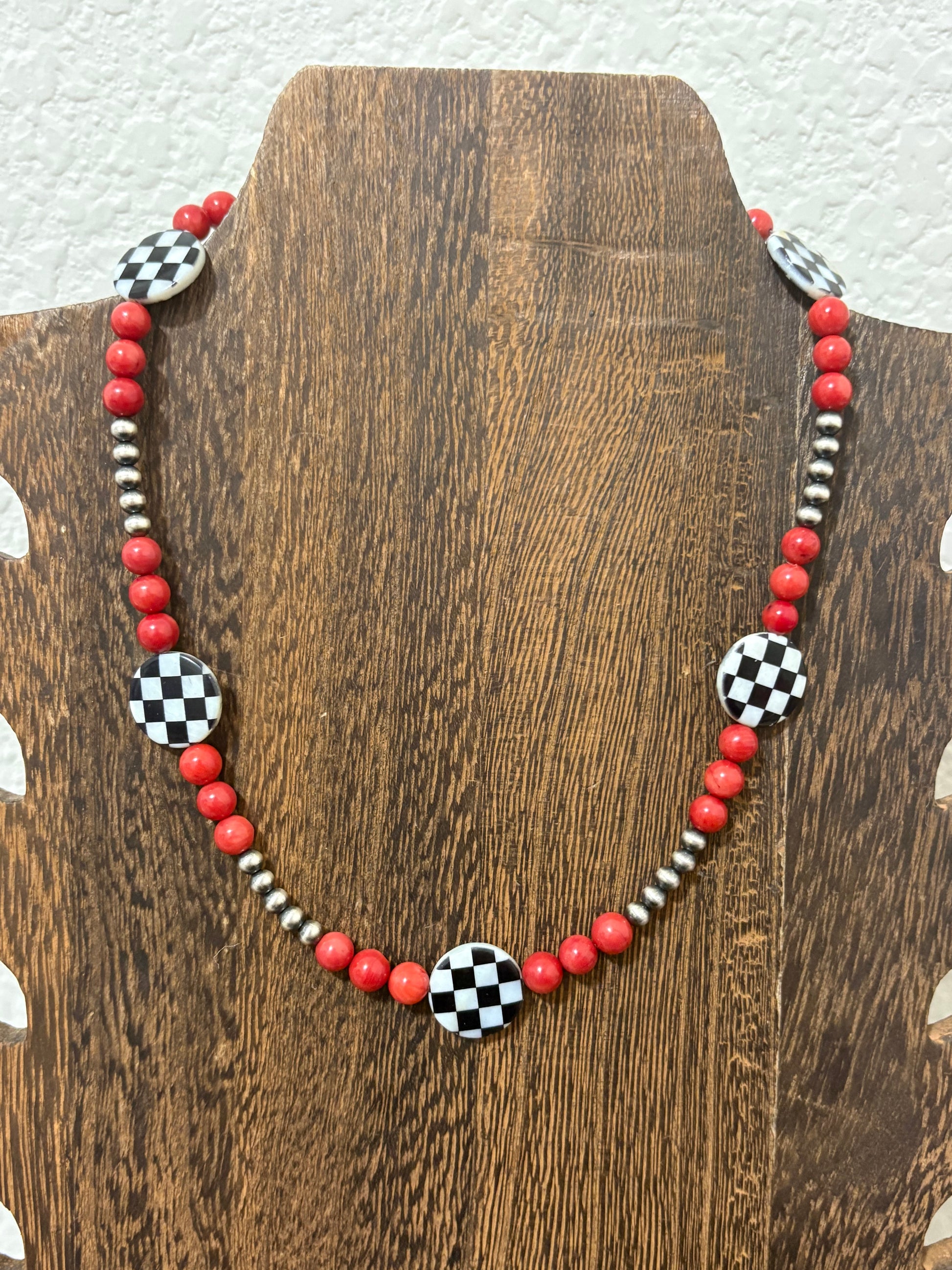16” Coral and Checkered Necklace